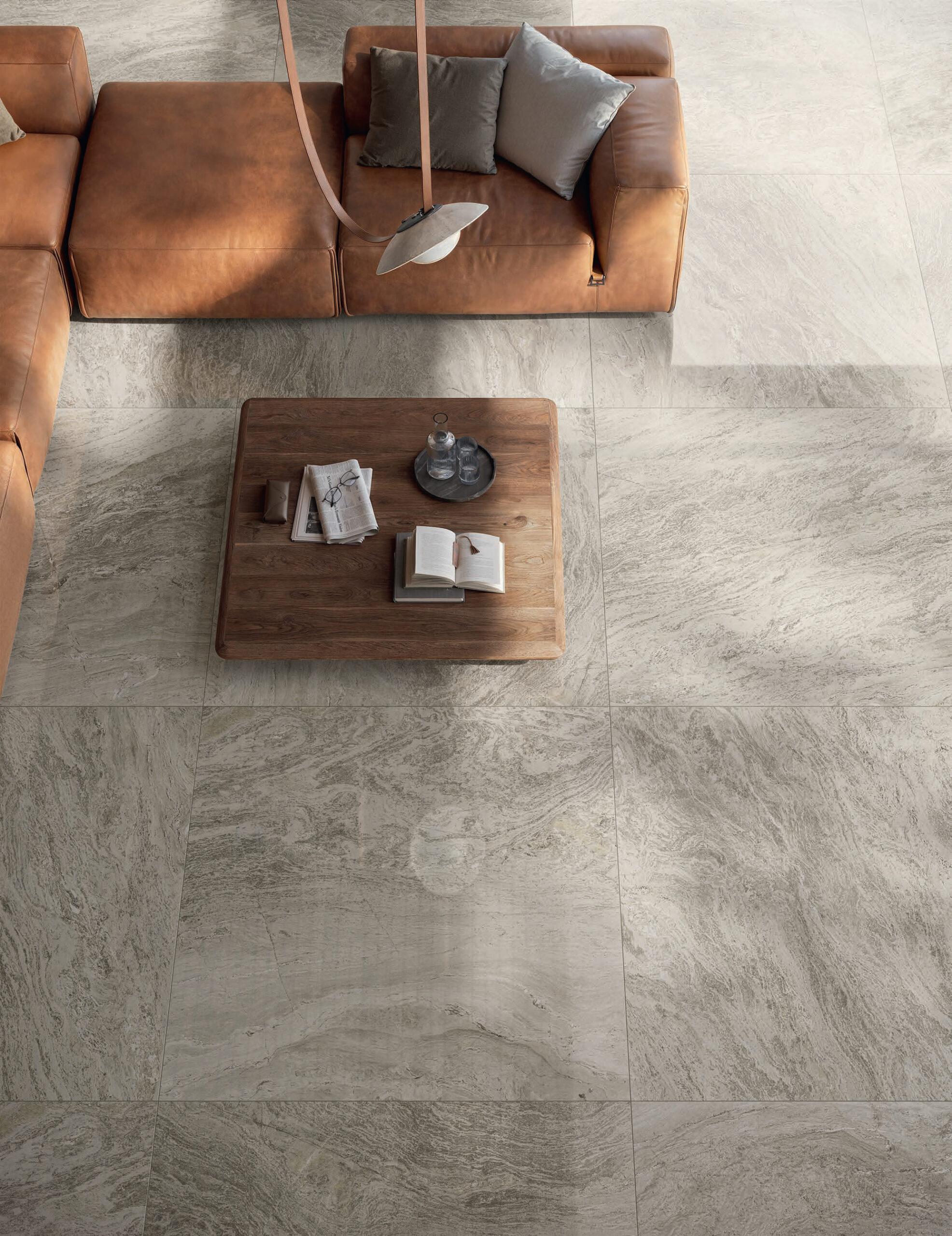 Kwarcyt ucieleśnia pierwotną siłę ziemi. Występuje na całym świecie i od tysięcy lat jest wykorzystywany do budowy miast, świątyń, dróg i pomników. Jego intensywna tekstura jest naznaczona płynnymi, poziomymi liniami, które harmonijnie rozchodzą się po powierzchni, nadając mu autentyczności i materialnej mocy.