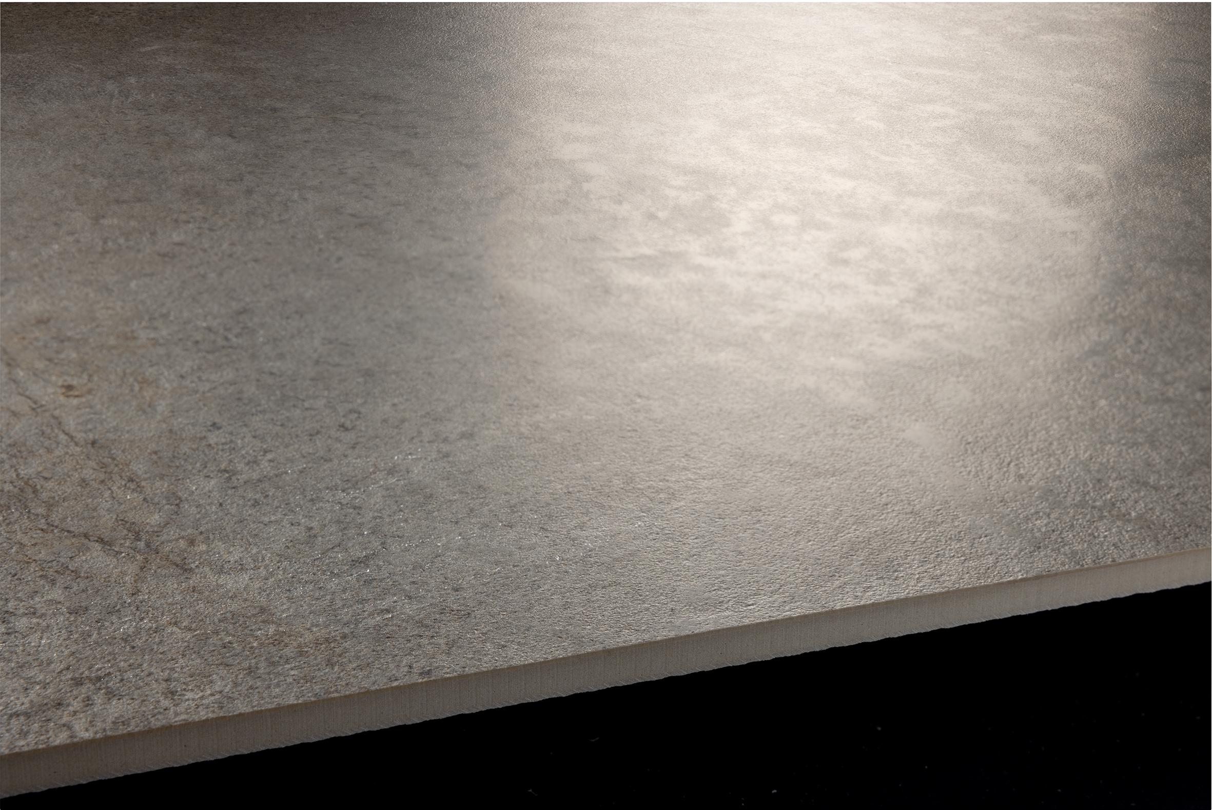 Uderzający charakter zróżnicowania kolorystycznego i żyłkowania podkreślone efektami materiałowymi i tłoczeniami nadają płytkom naturalności kamienia.