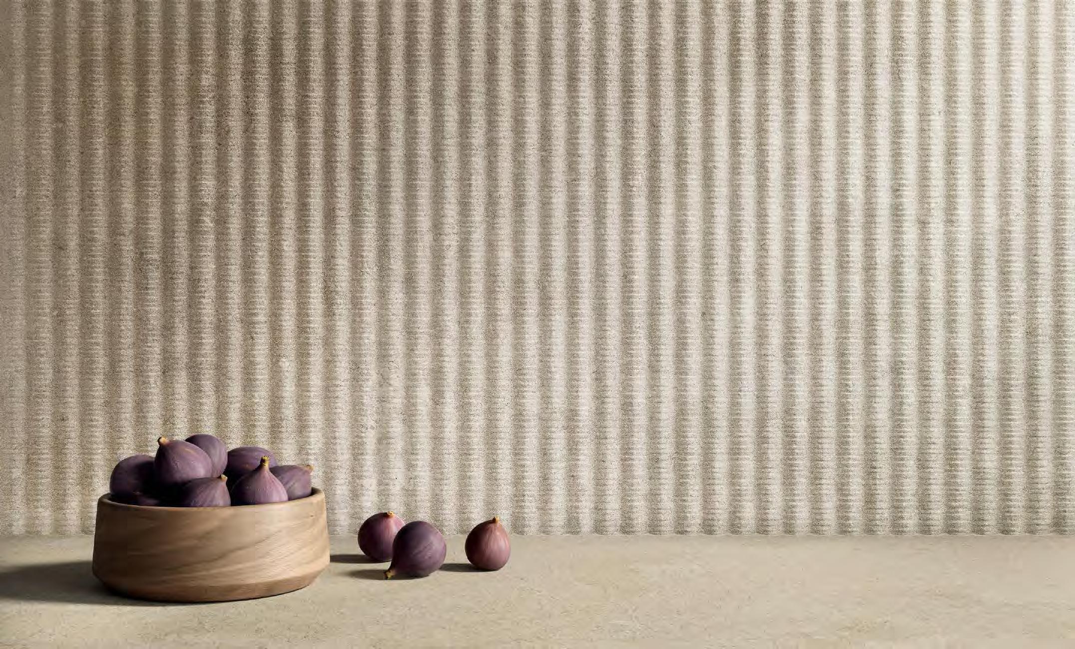 Kompaktowe, gustowne i przyjemne w dotyku połączenie nadaje tym materiałom współczesną interpretację, przekształcając je w wizualnie nieskazitelną powierzchnię o architektonicznym języku