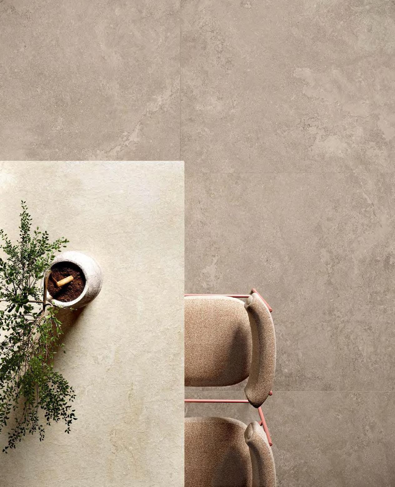 Kompaktowe, gustowne i przyjemne w dotyku połączenie nadaje tym materiałom współczesną interpretację, przekształcając je w wizualnie nieskazitelną powierzchnię o architektonicznym języku i wyrazistej prostocie.