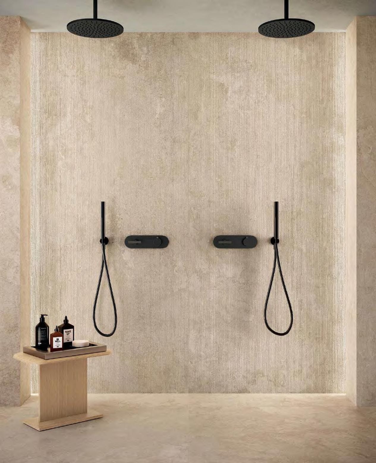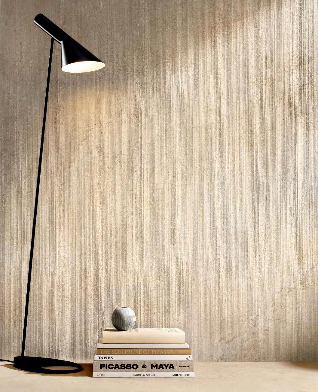 Kompaktowe, gustowne i przyjemne w dotyku połączenie nadaje tym materiałom współczesną interpretację, przekształcając je w wizualnie nieskazitelną powierzchnię o architektonicznym języku i wyrazistej prostocie.